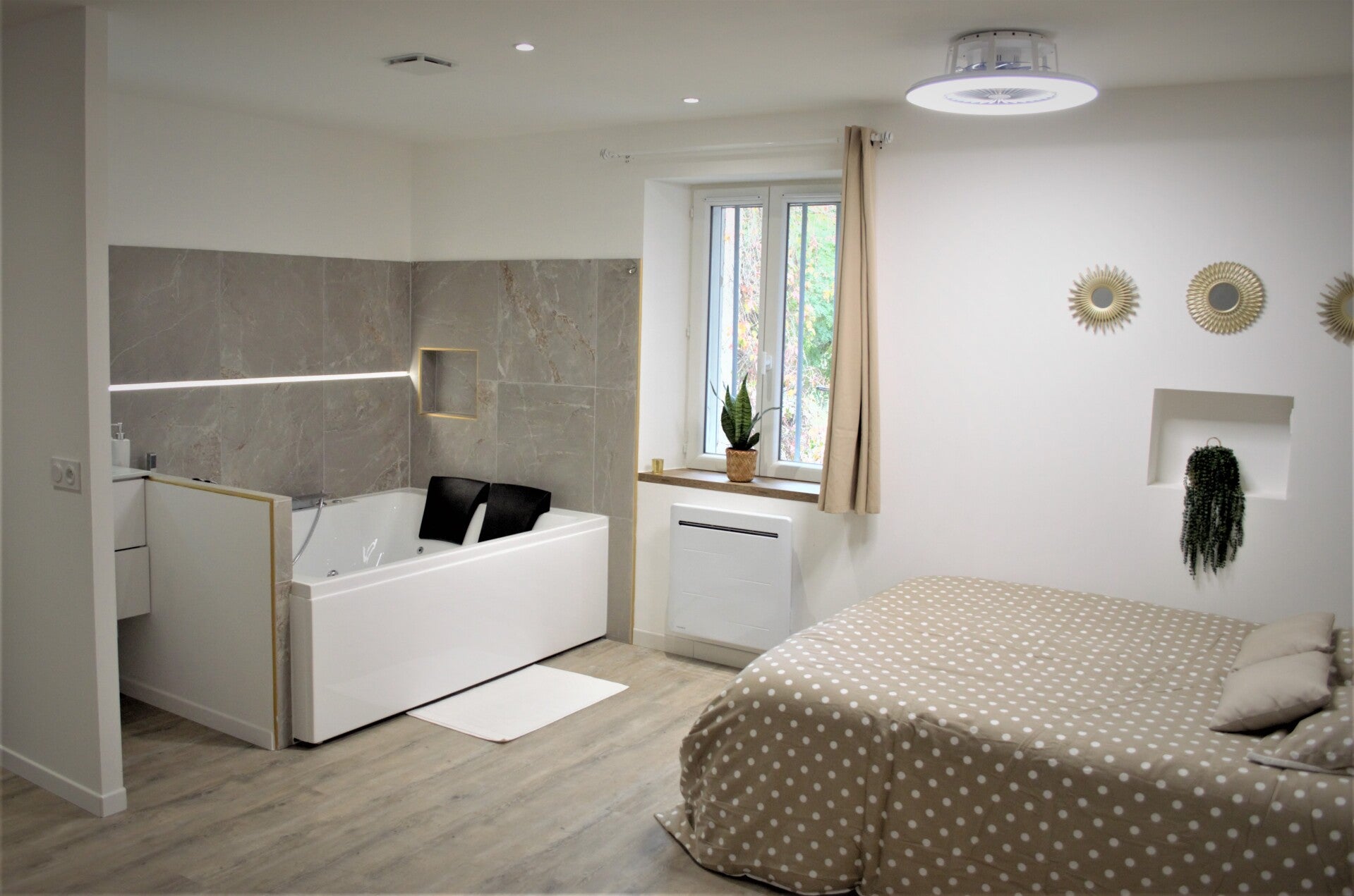 Création studio avec baignoire balnéo intégrée à la pièce